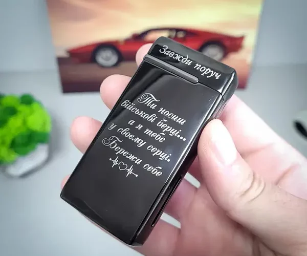 - Запальничка з гравіюванням — це не просто аксесуар, а маленький символ уваги, стилю й турботи. Вона поєднує практичність і емоційність, залишаючись при цьому довговічним і приємним сувеніром. Такий подарунок обов’язково запам’ятається і викличе щиру посмішку на обличчі того, хто його отримає.